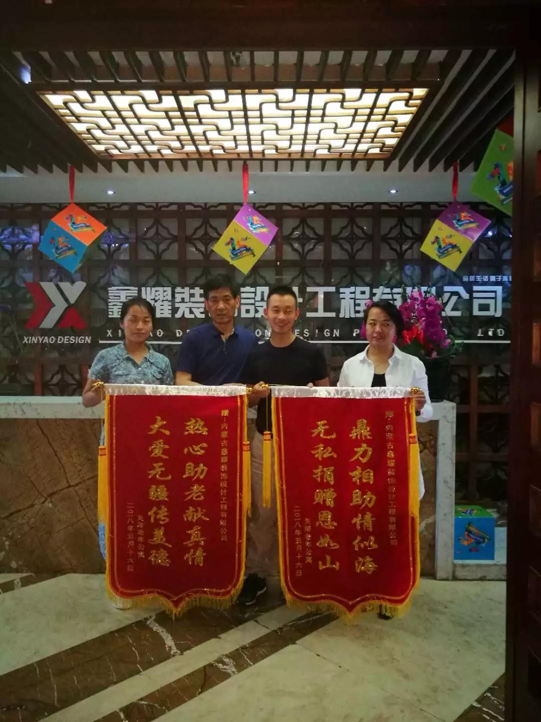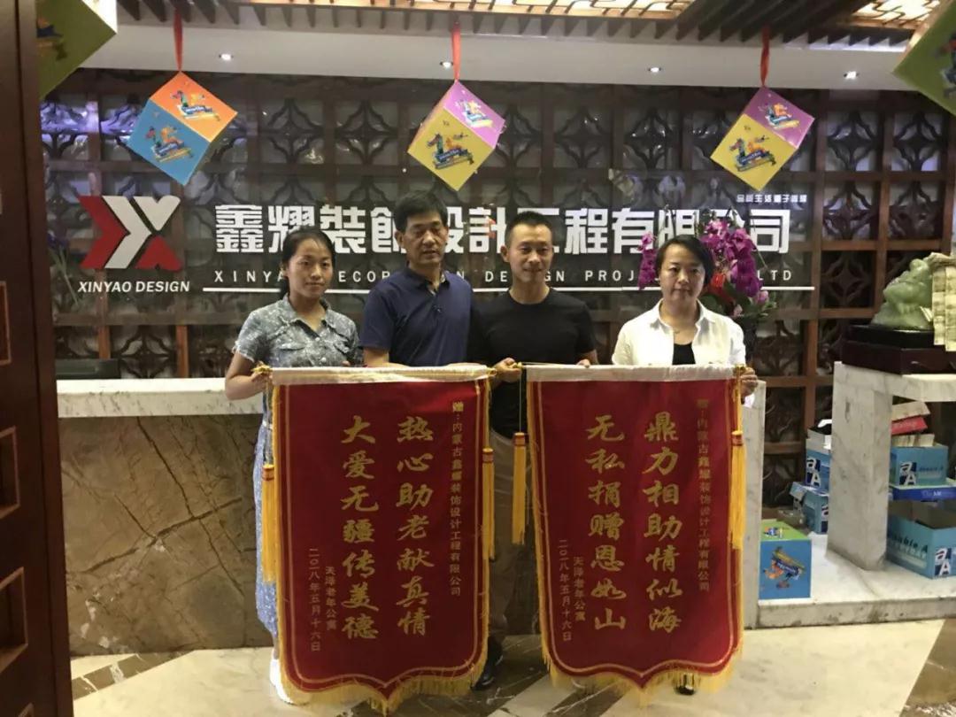 贈送鐫刻了“大愛無疆傳美德,熱心助老獻真情”、無私捐贈恩如山、鼎力相助情似?!?/span>等字樣的錦旗。也就是我們鑫耀裝飾在4月9日在天澤老年公寓進行的"關(guān)愛老人、奉獻愛心”的活動。
